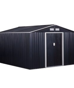 Outsunny Caseta de Jardín Exterior 12,4 m² 340x386x200 cm Cobertizo de Jardín Exterior con Puerta Corredera Techo Inclinado Base Refuerzo (Suelo NO Incluido) y 4 Ventanas Gris Oscuro
