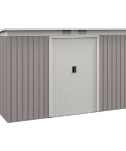 Outsunny Caseta de Jardín Exterior 3,2 m² 280x130x172 cm Cobertizo de Jardín Exterior con Puerta Corredera Techo Inclinado Base Refuerzo (Suelo NO Incluido) y 2 Ventanas Gris Claro