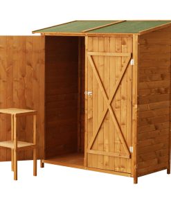 Outsunny Caseta de Jardín de Madera 139x75x160 cm Cobertizo para Almacenaje de Herramientas con Estantería Movible Puertas con Cerrojo Techo Asfáltico Madera Natural