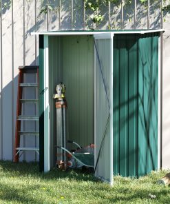 Outsunny Cobertizo de Acero 1,27㎡ 143x89x186 cm Tipo Caseta de Jardín Galvanizado Almacén para Herramientas con Techo Inclinado y Una Puerta para Terraza Exterior Verde