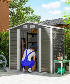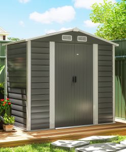 Outsunny Caseta de Jardín Exterior 2,7m² 249x121x183 cm Cobertizo de Jardín Exterior con Doble Puerta 2 Ventilaciones y Pestillo Cobertizo para Terraza Patio Gris