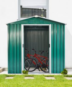 Outsunny Caseta de Jardín Exterior 3,6 m² 236x174x190 cm Cobertizo de Jardín Exterior con 2 Puertas Correderas Techo Inclinado y 4 Ventanas para Patio Terraza Verde