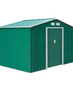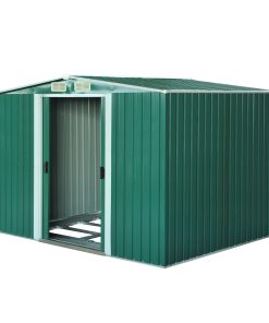 Outsunny Caseta de Jardín Exterior 4,9 m² 277x195x192 cm Cobertizo de Jardín Exterior con Puerta Corredera Techo de Fibra de Vidrio Base Refuerzo (Suelo NO Incluido) y 4 Ventanas Verde