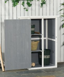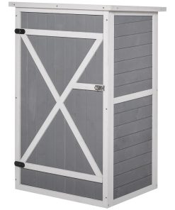 Outsunny Caseta de Jardín de Madera 75x56x115 cm Armario Cobertizo de Exterior para Herramientas con 3 Estantes Interiores Puerta con Pestillo y Techo Asfáltico Gris