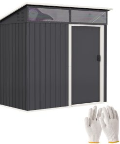 Outsunny Caseta de Jardín Exterior 3,6 m² 236x174x190 cm Cobertizo de Jardín Exterior con 2 Puertas Correderas Techo Inclinado y 4 Ventanas para Patio Terraza Gris