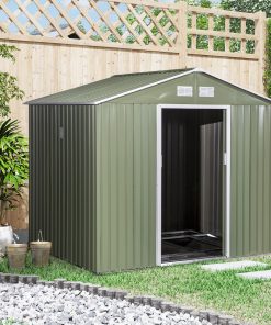 Outsunny Caseta de Jardín Exterior 258x206x178 cm 5,3m² Cobertizo de Jardín Exterior con Base Puertas Correderas y Ventilaciones para Almacenamiento de Herramientas Jardinería Verde