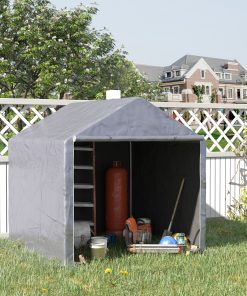 Outsunny Carpa para Herramientas Bicicletas y Motos 2x2x2 m Garaje Portátil con 1 Puerta con Cremallera 1 Cubierta de PE Impermeable Anti-UV y Marco de Acero Cochera Portátil para Jardín Gris