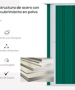 Outsunny Caseta de Jardín 1,07 m² 142x84x189 cm Cobertizo Exterior Metálico con Puerta Cerradura y Orificios de Drenaje para Almacenamiento de Herramientas Verde