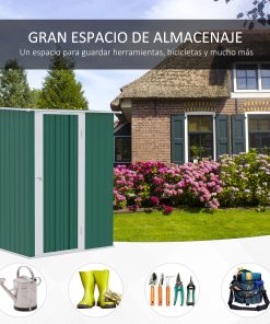Si quieres alargar la vida útil de tus equipamientos para el jardín y mantenerlos en un lugar seco y protegido, esta caseta de jardín grande para exterior de Outsunny es la solución ideal. Hecho de acero galvanizado resistente a la intemperie, tiene una estructura resistente y estable. Su techo inclinado evita que el agua se estanque, no teniendo que preocuparte de que eso ocurra en épocas de lluvia ¡No esperes más y organiza tu jardín ahora! Características: Cobertizo de jardín con estructura de acero resistente Acero tratado para mayor resistencia a la intemperie para su uso en exteriores Cobertizo de acero apto para almacenar herramientas, equipos de jardinería, bicicletas y demás Techo inclinado para que el agua no se acumule y no pudra / oxide la estructura Puerta alta para facilitar el acceso, con pestillo de seguridad Paneles pre taladrados para simplificar su instalación, ahorrando tiempo y esfuerzo NOTA: este cobertizo NO incluye suelo Especificaciones: Color: verde Material: acero lacado y PP Medidas totales: 142x84x177-189 cm (LxANxAL) Medidas interiores: 128×69 cm (LxAN) Medidas de la puerta: 63×171 cm (LxAL) Medidas de la base: 135×79 cm (LxAN)(exterior) Referencia: 845-328V01GN