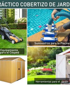 ¿Buscas un cobertizo moderno? Este cobertizo de jardín de Outsunny está hecho de acero lacado y galvanizado, resistente a la intemperie y a la corrosión. El techo inclinado evita que se acumule el agua de lluvia. Esta caseta exterior cuenta con un gran espacio para que puedas guardar todas tus herramientas de jardín y demás equipamientos. Además, su doble puerta corredera permite un fácil acceso y tiene 4 rejillas de ventilación, ideales para evitar la aparición de moho o humedad. Características: Caseta de jardín hecha de acero resistente para un uso prolongado y duradero Techo inclinado para evitar la acumulación de agua y encharcamiento Doble puerta corredera para facilitar el acceso de fuera a dentro de la caseta y viceversa Los tiradores de la puerta permiten colocar un candado (no incluido) si precisas de mayor seguridad al cerrar el cobertizo Cobertizo de jardin exterior cuenta con 4 rejillas de ventilación (2 delante y 2 detrás) para favorecer la ventilación del habitáculo Los bordes blancos en puerta y techo proporcionan un diseño más moderno y actual Requiere montaje, base no incluida Especificaciones: Color: ocre Material: acero galvanizado y polipropileno (PP) Medidas totales: 236x174x190 cm (LxANxAL) Medidas interiores: 226x162x156 cm (LxANxAL) Medidas de la puerta: 82×154 cm (LxAL) Medidas del respiradero: 15×7 cm (LxAN) Referencia: 845-429YL Importante: Este producto se envía por separado en diferentes cajas, por lo tanto, el tiempo de entrega puede ser distinto en cada una. Cantidad de caja: 2