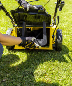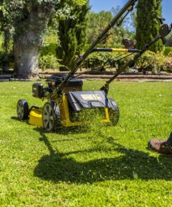Cortacésped con motor Loncin 4 T OHV, 196 cc y 10,5 Nm con estárter automático, lo que facilita la tarea del arranque. Ideal para jardines de hasta 1750 m2.