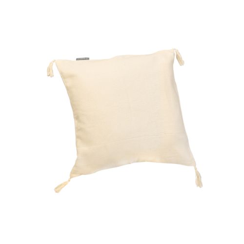 Un envoltorio artístico: nuestra funda para cojines Benção, elaborada en algodón orgánico, no solo tiene un tacto agradable y suave, sino que también atrae todas las miradas con sus borlas decorativas.