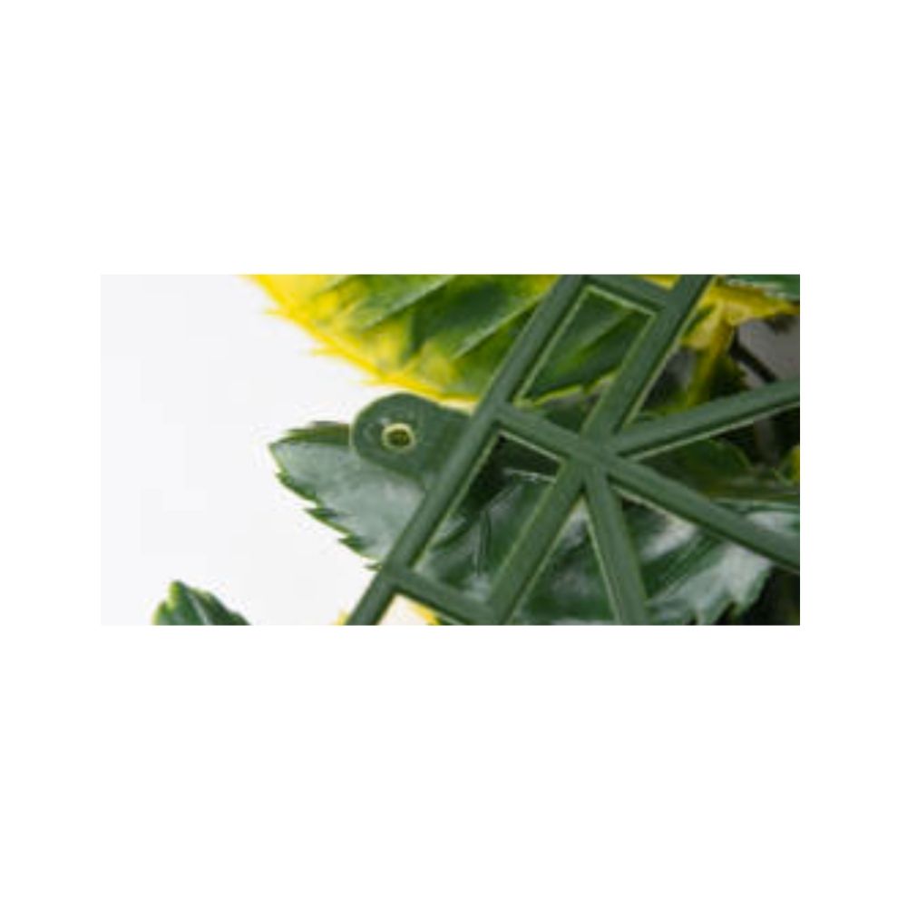 Jardín vertical Irolia decorativo. Ideal para decorar un espacio, pared o techo. Fabricados con hojas sintéticas con magníficos colores y flores originales que les otorgan una excepcional apariencia y acabado natural. Su base está conformada por paneles de PVC y anclajes que se unen entre sí para crear piezas más grandes. Precio por unidad