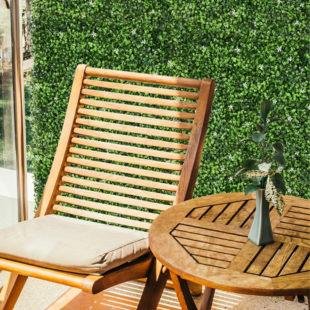 Jardín vertical Jazmín decorativo. Ideal para decorar un espacio, pared o techo. Fabricados con hojas sintéticas con magníficos colores y flores originales que les otorgan una excepcional apariencia y acabado natural. Su base está conformada por paneles de PVC y anclajes que se unen entre sí para crear piezas más grandes. Precio por unidad