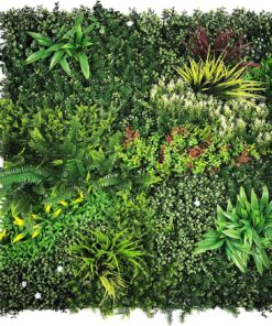 Jardín vertical Natus decorativo. Ideal para decorar un espacio, pared o techo. Fabricados con hojas sintéticas con magníficos colores y flores originales que les otorgan una excepcional apariencia y acabado natural. Su base está conformada por paneles de PVC y anclajes que se unen entre sí para crear piezas más grandes. Precio por unidad
