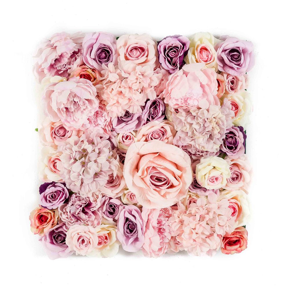 Jardín vertical FLORAL de máxima frondosidad, en placa de 50 X 50 cm. No válido para exterior. Preciosas rosas de diferentes tamaños en colores pastel. Fácil colocación.