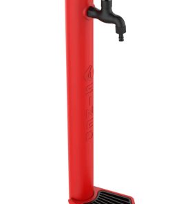 Fuente roja de exterior con cubo de 5 litros de capacidad y recogedor de hojas de hierro fundido. Predisposición con acoplamientos rápidos para manguera de jardín. Recomendado para todas las actividades al aire libre, tanto públicas como privadas, por su calidad de construcción y sus accesorios exclusivos. Conexión de agua lateral o inferior con válvula de 3 vías, fabricada en HDPE (polietileno de alta resistencia) resistente a los rayos UV, a la cal y a la salinidad, perfecta también para ambientes marinos.