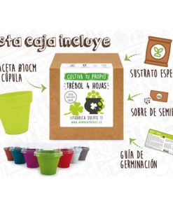 Con nuestro Kit Semillero Trébol de 4 hojas podrás sentir la experiencia de cultivar tu propia suerte de una manera, fácil y sencilla, y siguiendo pasos básicos que podrás encontrar en nuestras instrucciones de germinación. Será un complemento perfecto para cualquier zona de interior de tu casa o balcón.