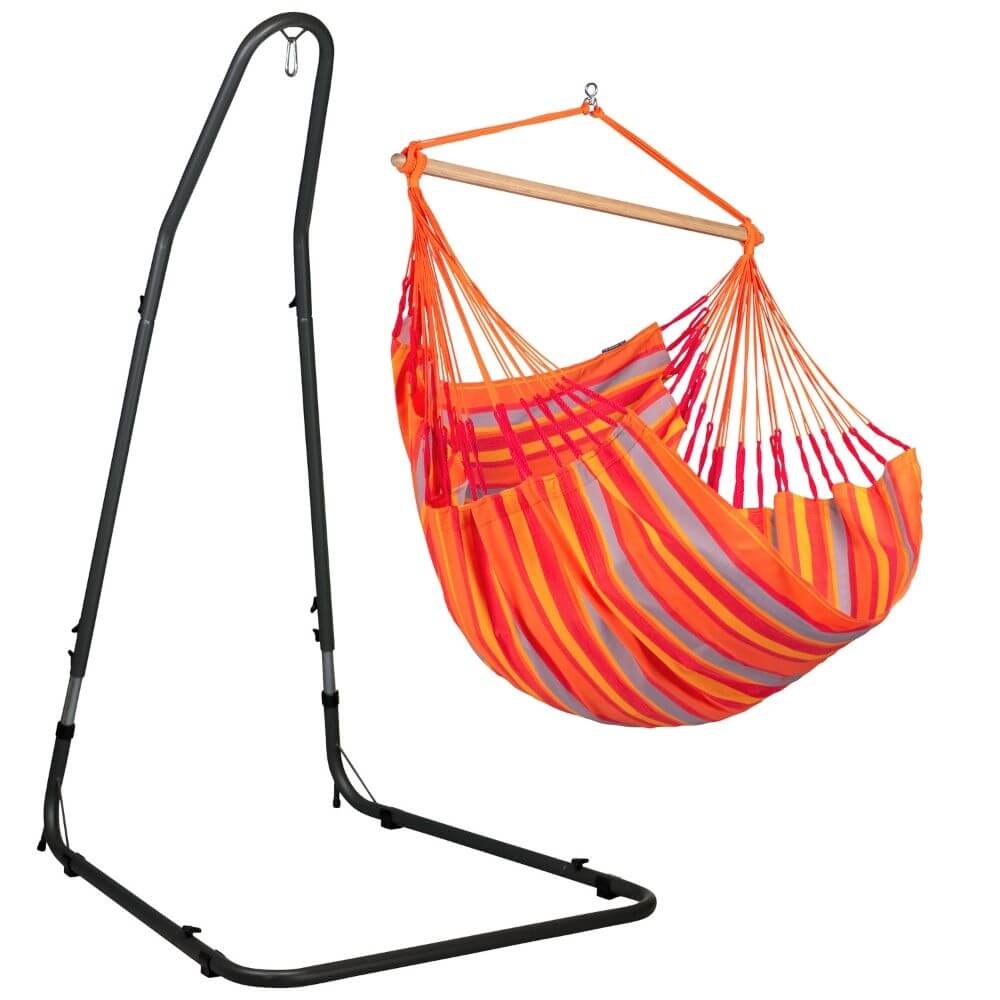 Gracias al sistema de trabilla con mosquetón, la silla colgante se puede colgar rápidamente a la altura deseada. |