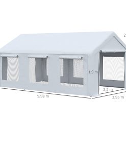Outsunny Carpa para Fiestas 6×3 m Pabellón de Jardín con 2 Paredes Laterales Extraíbles 2 Puertas y 6 Ventanas con Cremalleras Protección UV Cenador para Eventos Celebraciones Blanco