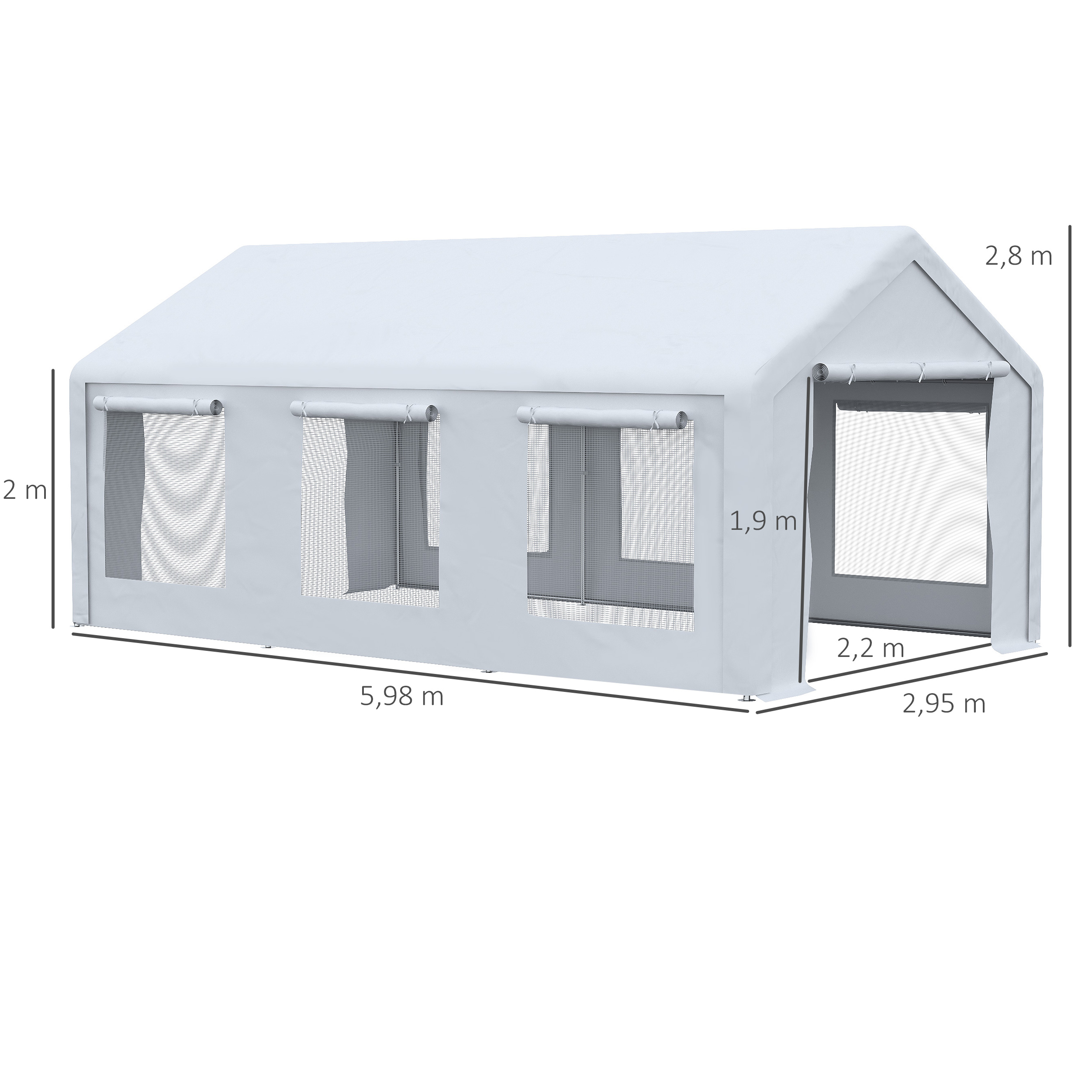 ¿Estás planeando una actividad o evento al aire libre? Un Gazebo es imprescindible en todas las épocas del año. En verano para protegerse del sol, en otoño o en invierno del frío y en cualquier época del viento y la lluvia. Además, esta pérgola de Outsunny con estructura de acero cuenta con cuerdas y piquetas para fijar en el suelo para mayor resistencia. Tiene ventanas de malla mosquitera y las paredes laterales se pueden quitar según tus necesidades. Ideal para fiestas o eventos. Características: Cenador de Jardín de 6×3 m que ofrece mucho espacio para realizar diversas actividades al aire libre Adecuada para una gran variedad de ocasiones, como eventos, bodas, fiestas al aire libre, etc. La estructura de acero con recubrimiento en polvo ofrece un soporte fuerte y estable con gran resistencia a la intemperie y a la corrosión Cubierta de PE resistente a los rayos UV Las paredes laterales son desmontables para retirar o colocar según las diferentes necesidades Cuenta con 2 puertas para facilitar el acceso y garantizar una buena ventilación Tiene 6 ventanas enrollables con malla mosquitera Incluye 4 cuerdas de tracción y 20 estacas de tierra para fijar en el suelo firmemente Requiere montaje Especificaciones: Color: blanco Material: acero y PE Medidas totales: 598x295x280 cm (LxANxAL) Altura del alero: 200 cm Medidas de la puerta: 220×190 cm (ANxAL) Medidas de la pared lateral: 595×195 cm (LxAN) Medidas de las ventanas: 125×125 cm (LxAN) Referencia: 84C-296 El paquete incluye: ● 1 x Carpa para fiestas; ● 4 x Cuerda de tracción; ● 20 x Estaca de tierra; ● 1 x Manual de instrucciones