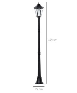 Outsunny Farola Solar Luz Solar de Exterior con Panel Solar Encendido y Apagado Automático Resistente a la Intemperie Marco de Aluminio IP44 para Terraza Patio 22x22x194 cm Negro