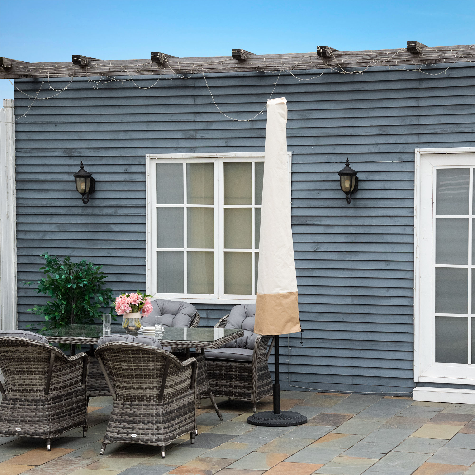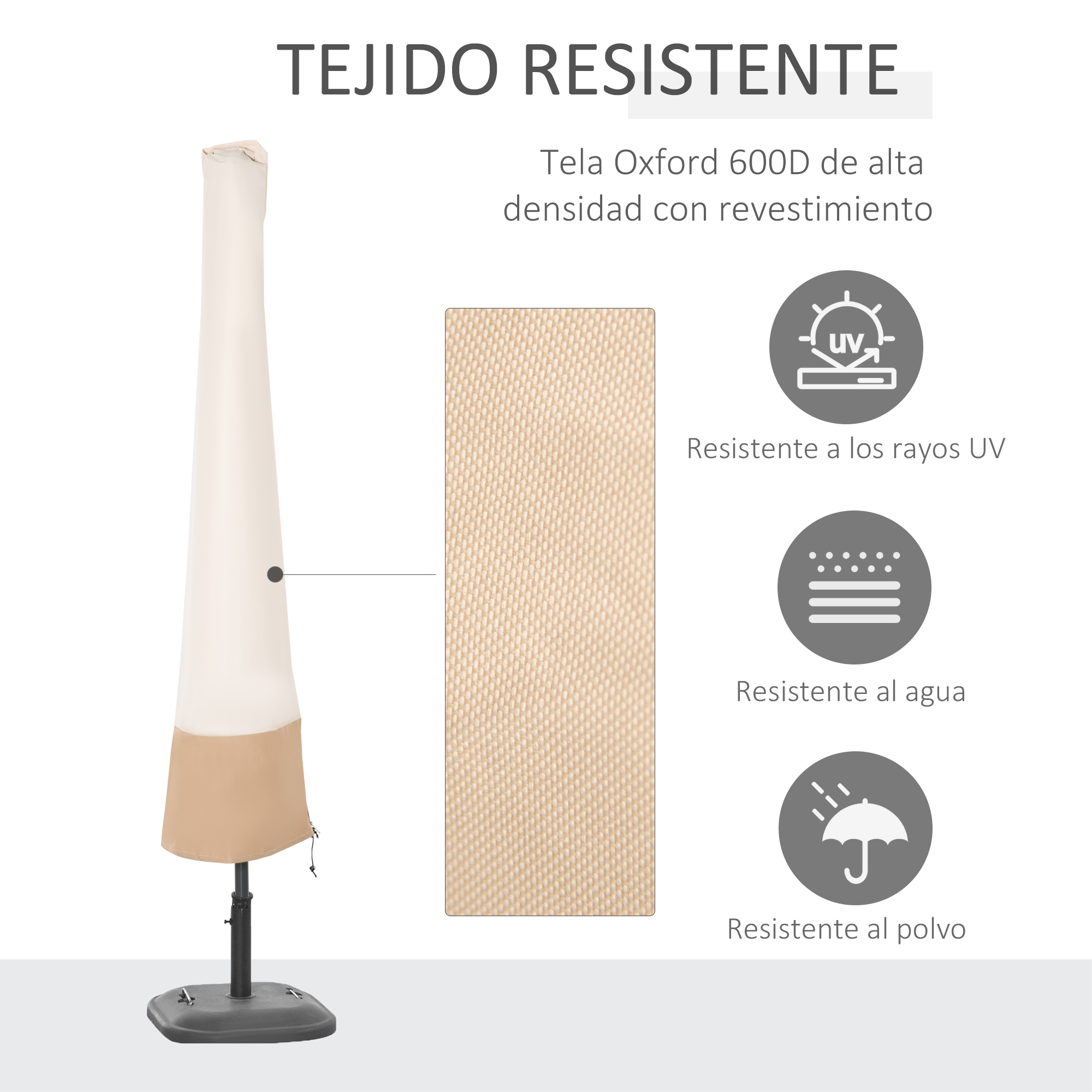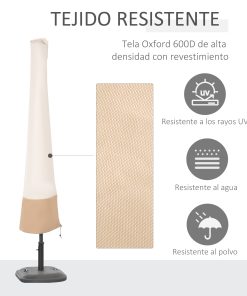 Outsunny Funda para Sombrilla de Jardín Impermeable de Tela Oxford 600D Ø60×190 cm Funda Protectora de Parasol con Banda Elástica y Cremallera para Patio Terraza Exterior Beige