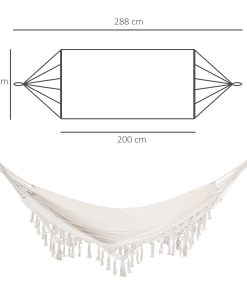Outsunny Hamaca Colgante 288×150 cm Hamaca de Jardín de Estilo Boho con Bolsa de Transporte Carga 120 kg Hamaca para Patio Terraza Balcón Camping Crema