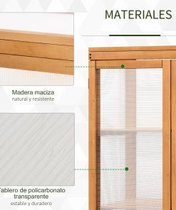 Si no quieres que la temperatura exterior limite el crecimiento de tus plantas o te impida tenerlas en invierno, este mini invernadero de Outsunny de madera y paneles de policarbonato con 3 alturas es una gran solución. El techo, también de policarbonato, se puede abrir para facilitar el acceso y la ventilación interior. Y una vez cerrado, seguirá permitiendo la entrada de luz solar que necesitan tus plantas para un correcto crecimiento. Características: Ideal para sembrar, proteger los brotes frágiles y prolongar la temporada de crecimiento Estructura de madera maciza de abeto con paneles de policarbonato transparente Paneles con protección UV, resistentes e irrompibles mantienen la temperatura interior y dejan pasar la luz del sol para que tus plantas puedan absorberla Mini invernadero de 3 niveles con estantes de rejilla para facilitar el drenaje del agua de las plantas Su triple altura proporciona una mayor amplitud en un espacio reducido El techo abatible facilita el acceso y proporciona una buena ventilación Puerta con cerradura y tapa con bisagras laterales para fijar su apertura Requiere montaje Especificaciones: Color: madera natural Material: madera de abeto y panel de policarbonato Medidas totales: 76x47x110 cm (LxANxAL) Medidas de la tapa: 76×47 cm (LxAN) Medidas de cada puerta: 38×100,5 cm (ANxAL) Medidas de la balda: 71×42,5 cm (LxAN) Carga máxima: 15 kg (cada estante) Referencia: 845-135 El paquete incluye: ● 1 x Invernadero; ● 1 x Manual de instrucciones