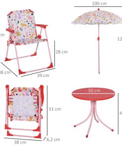 Outsunny Set de Mesa y Sillas Exterior Infantil Conjunto de Picnic Plegable para Jardín Juego de Mesa con Sombrilla Ajustable 100-125 cm Protección de UV Rojo