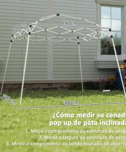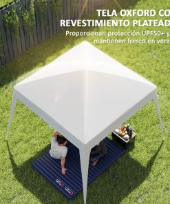 Renueva tu carpa de eventos con este techo de repuesto de Outsunny. Ideal para carpas de 3×3 m / 2,4×2,4 m con patas inclinadas, este toldo de pérgola de poliéster ofrece protección UPF 50+ contra el sol. Con cierres de velcro para un ajuste seguro, tu carpa estará lista para cualquier evento. Además, este toldo de pérgola de recambio es fácil de plegar y guardar cuando no se esté utilizando. Características: Techo de repuesto compatible con carpas con base de 3×3 m y parte superior de 2,4×2,4 m (referencia compatible: 840-159) Este toldo de cenador de 3×3 m está fabricado en poliéster con revestimiento plateado UPF 50+ que protege contra el sol intenso Cierres de velcro aseguran la parte superior de forma segura Ganchos elásticos se acoplan rápidamente a las patas de la carpa La instalación puede realizarse en menos de cinco minutos por dos personas Ligero y plegable para un almacenamiento sin complicaciones Especificaciones: Color: blanco Material: tela Oxford Medidas totales: 240×240 cm (LxAN) (superior), 300×300 cm (LxAN) (base) Compatible con la referencia: 840-159 Referencia: 84C-625V00WT El paquete incluye: ● 1 x Toldo de reemplazo; ● 1 x Manual de instrucciones