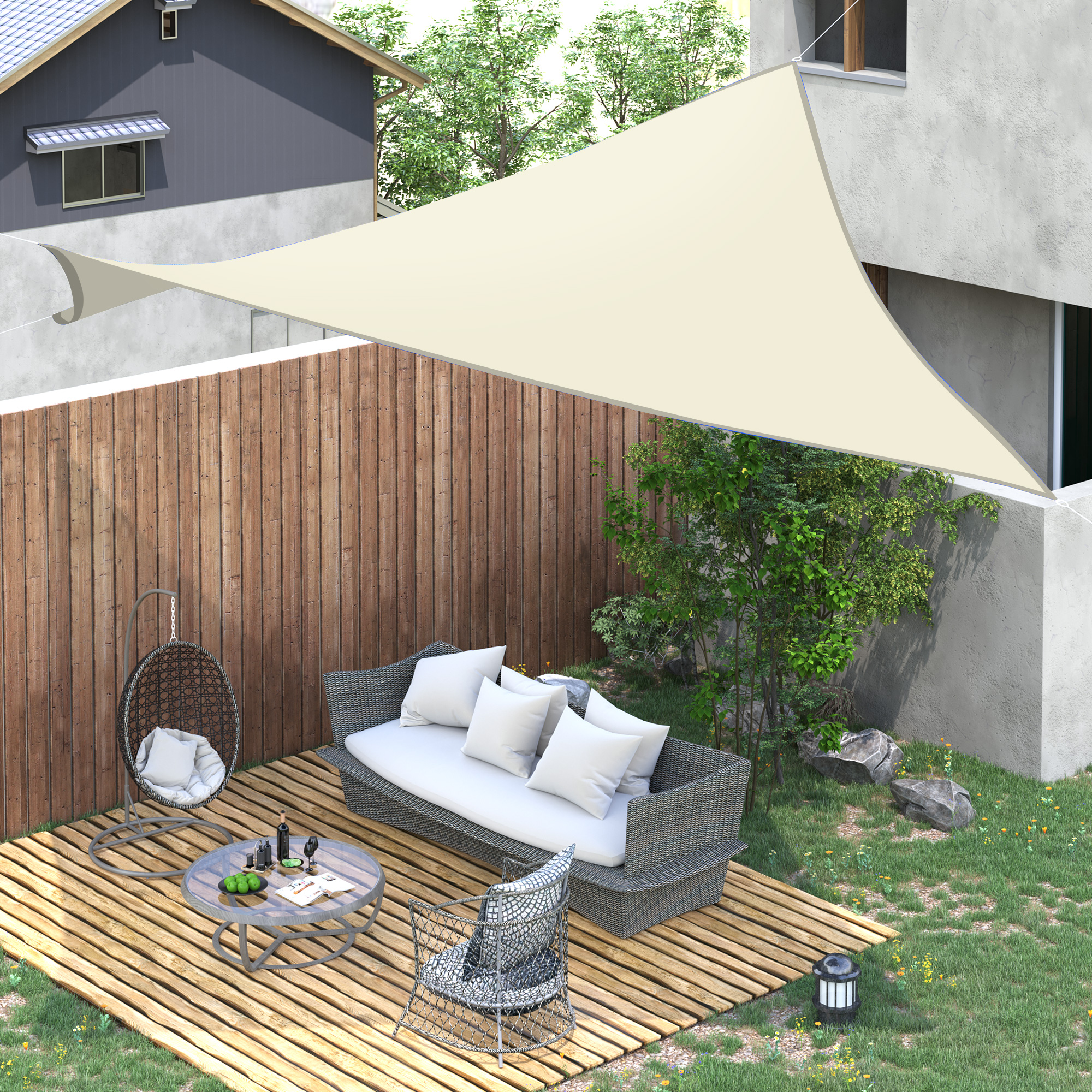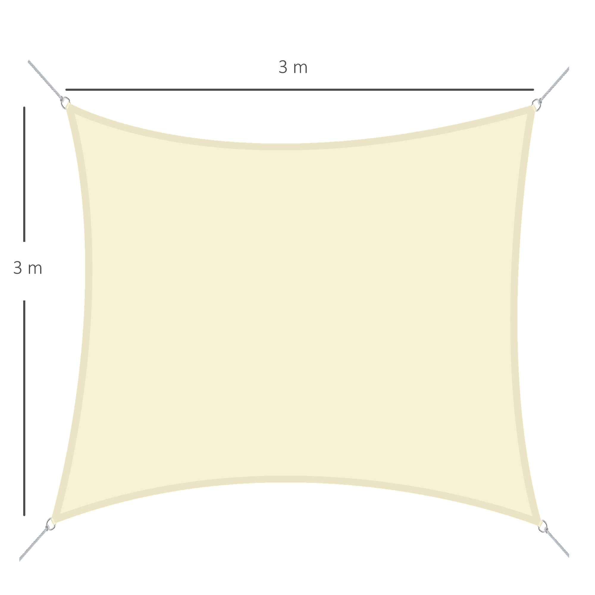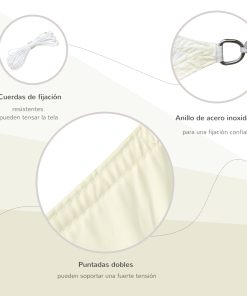 Outsunny Toldo Vela de Sombra Cuadrado 3×3 m Toldo de Terraza de Poliéster con Anillo de Acero Inoxidable y Cuerdas para Jardín Patio Crema