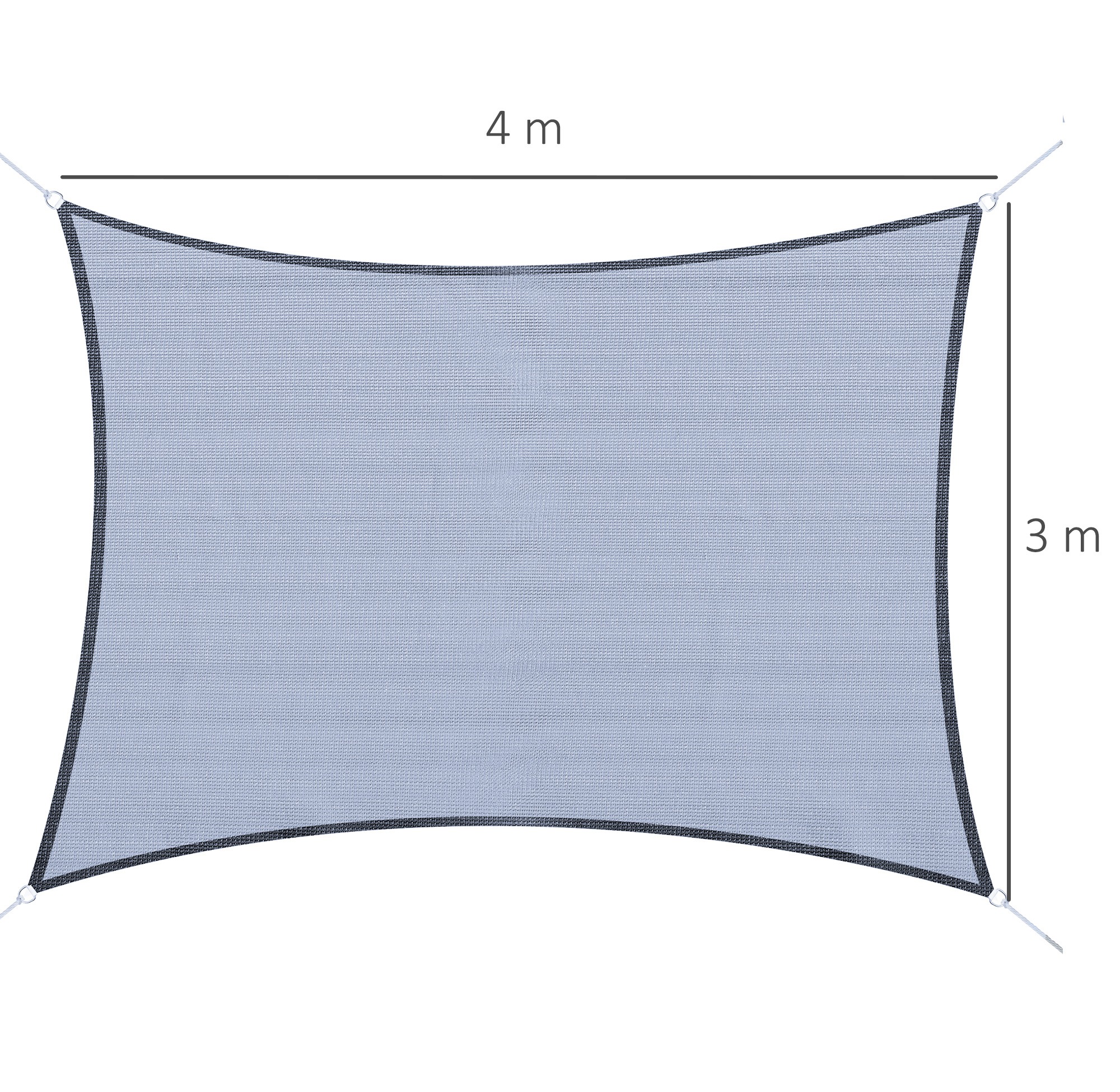 Outsunny Toldo Vela de Sombra Rectangular 4×3 m Toldo de Terraza Protección Rayos UV con Bolsa de Transporte Anillo de Acero Inoxidable y Cuerdas para Jardín Patio Gris