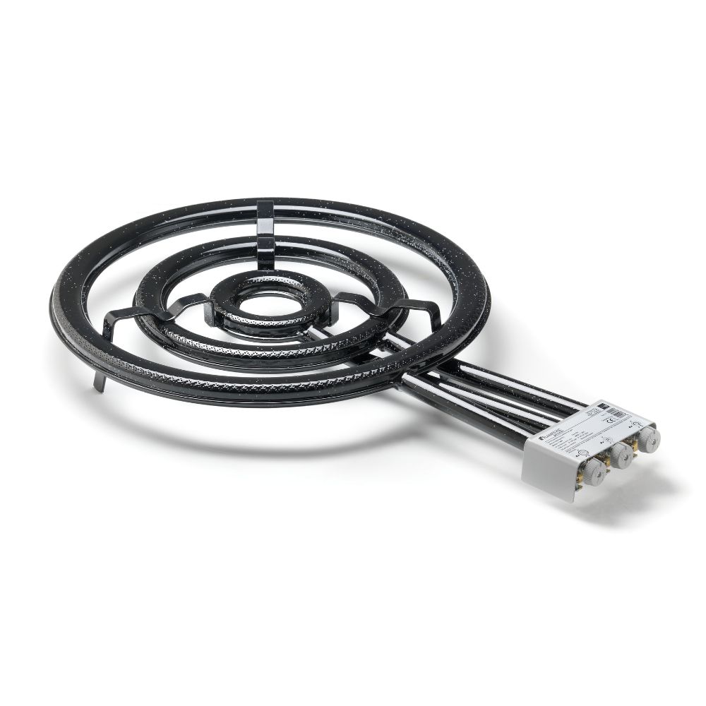 El Paellero T-600 está diseñado para cocineros que necesitan preparar grandes cantidades de paella en eventos al aire libre. Compatible con gas butano (28 mbar) y propano (37 mbar), este paellero distribuye el calor de manera uniforme, garantizando una cocción perfecta. Su diseño robusto asegura durabilidad y resistencia, ideal para entornos exigentes.