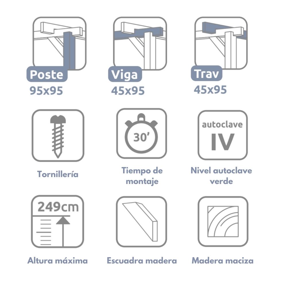 - 300 x 300: poste ( 2uds) + viga ( 2 uds) + travesaño(5uds)