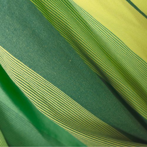 Si algo caracteriza a nuestras sillas colgantes colombianas es su gran número de cordones de sujeción, que permiten distribuir el peso de forma óptima y mejoran así el confort y la durabilidad. Además, los bordes reforzados proporcionan a la tela una gran resistencia a los desgarros. El enganche giratorio integrado hace posible una rotación segura sobre el propio eje.