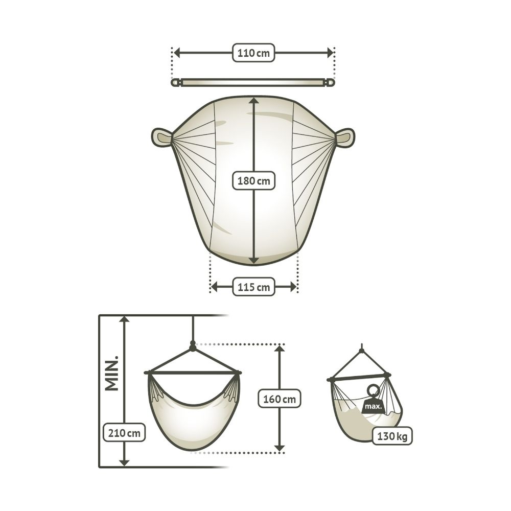 Con una superficie de 180 cm de longitud, las sillas colgantesComfort te permiten disfrutar de forma óptima sentándote o tumbándote en un espacio compacto. |