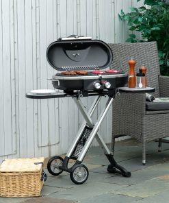 Outsunny Barbacoa de Gas con 2 Quemadores 5,6 KW BBQ de Gas con 2 Ruedas 2 Mesas Laterales y Parrillas de Acero para Picnic Camping 104x49x99 cm Negro