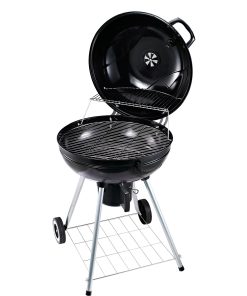 Outsunny Barbacoa de Carbón Vegetal con Ruedas Parilla de Carbón BBQ Portátil Tapa y Tazón Esmaltados Mangos de Madera 48x56x85cm para Jardín Exterior Picnic Acampada