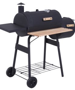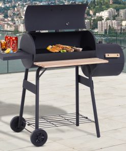 Outsunny Barbacoa de Carbón Vegetal con Ruedas Estantes Parilla Barril Carro de BBQ Picnic Acampada Smoker Ahumador de Carbón 115x56x108cm