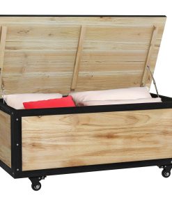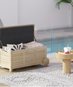 Outsunny Baúl de Exterior 121L Arcón Almacenaje de Madera con 4 Ruedas para Jardín Patio Balcón 100x50x43 cm Natural y Negro