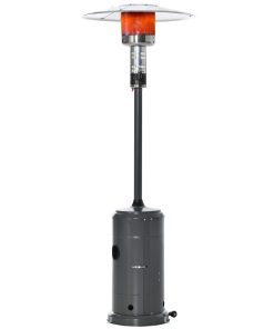 Outsunny Calentador de Patio 12,5KW Tipo Sombrilla Estufa de Gas para Exterior con Apagado Automático Ruedas y Cubierta Ø81×222 cm Gris Carbón