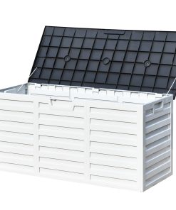 Outsunny Baúl de Almacenamiento Exterior 260L con Asas y Ruedas Incorporados Ojos de candado Arcón para Patio Jardín Piscina 112x49x53,5 cm Blanco