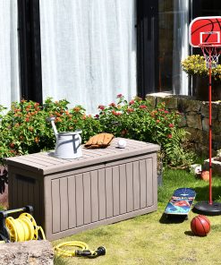 Outsunny Baúl de Almacenamiento Exterior 290L con Asas y Ruedas Incorporados Candado Arcón para Patio Jardín Piscina Carga Máx. 50 kg 124×52,5×56,5 cm Gris Claro