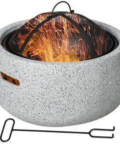 Outsunny Brasero Exterior Redondo Brasero Exterior Jardín con Atizador Protector de Chispas Rejilla y Manija Ø45×34 cm para Terraza Camping Fiesta Gris