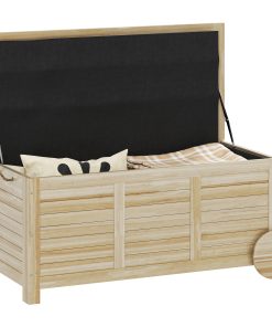 Outsunny Baúl de Almacenaje Exterior 185L Arcón de Jardín de Madera Impermeable con Tapa Abrible 2 Ruedas Cuerdas de Lino Bisagras Metálicas y Forro Interno 110x50x50 cm Natural