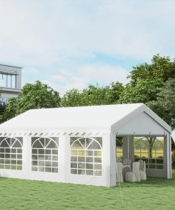 Outsunny Carpa para Fiestas 6×3 m Pabellón de Jardín con 2 Puertas 4 Paredes Laterales Extraíbles y 4 Ventanas para Exterior Eventos Bodas Festivales Blanco