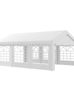 Outsunny Carpa para Fiesta Cochera Gazebo 6x4m Pergola Cenador Pabellón 4 Paneles Laterales Ventanas Anti-UV para Eventos Bodas Acero PE Blanco