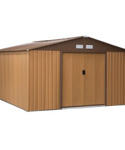 Outsunny Caseta de Jardín Exterior 12,4 m² 340x386x200 cm Cobertizo de Jardín Exterior con Puerta Corredera Techo Inclinado Base Refuerzo (Suelo NO Incluido) y 4 Ventanas Ocre Oscuro