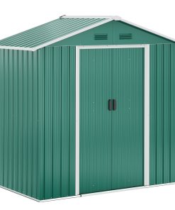 Outsunny Caseta de Jardín 2,2 m² 194x110x184 cm Cobertizo de Acero Galvanizado para Almacenamiento de Herramientas con Puerta Corrediza y 4 Ventanas para Terraza Exterior Verde